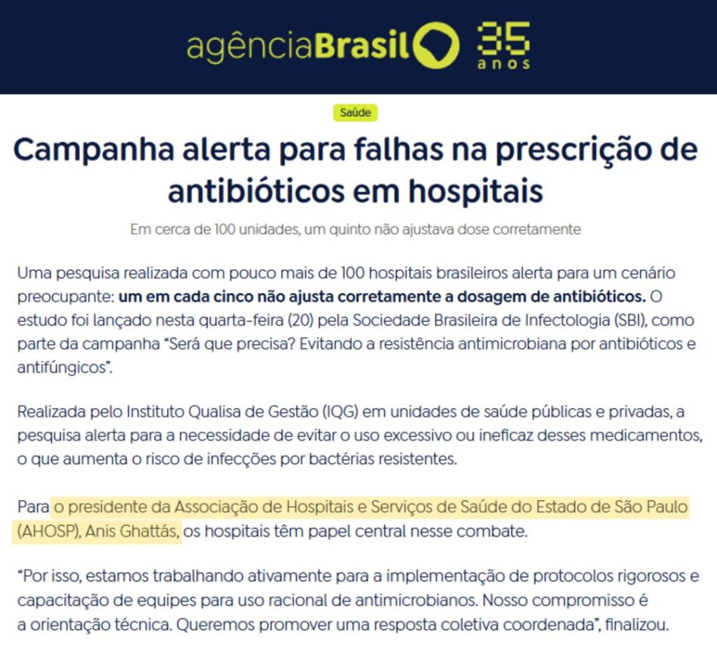 Realizada pelo Instituto Qualisa de Gestão (IQG) em unidades de saúde públicas e privadas, a pesquisa alerta para a necessidade de evitar o uso excessivo ou ineficaz desses medicamentos, o que aumenta o risco de infecções por bactérias resistentes.
